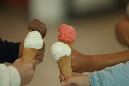 Jedes Kind durfte sich über eine Kugel Eis freuen – zur Auswahl standen vier verschiedene Sorten, sodass für jeden Geschmack etwas dabei war. Die leuchtenden Augen und glücklichen Gesichter sprachen für sich: Das Eis kam gut an!